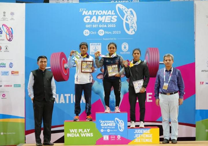 पणजी, 26 अक्टूबर । गोवा में चल रहे 37वें राष्ट्रीय खेलों में महाराष्ट्र की भारोत्तोलक दीपाली घुरसाले ने बुधवार को महिलाओं की 45 किलोग्राम में स्नैच और कुलभार वर्ग में राष्ट्रीय रिकॉर्ड बनाते हुए स्वर्ण पदक जीत लिया। घुरसाले ने स्नैच में 75 और क्लीन एंड जर्क में 90 किग्रा सहित कुल 165 किलोग्राम का भार उठाकर स्वर्ण पदक अपने नाम किया।