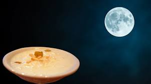 मान्यता है कि शरद पूर्णिमा के दिन रात 12 बजे चंद्रमा से अमृत गिरता है और चंद्रमा के इस आशीर्वाद को पाने के लिए खीर अथवा मेवे वाला दूध बनाकर घर के छत पर रखा जाता है | तथा रात के 12 बजे चंद्रमा की पूजा कर के उस खीर को प्रसाद के रूप में ग्रहण किया जाता है |
