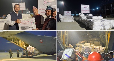 9 टन राहत सामग्री की इस खेप को भारतीय वायु सेना के विशेष विमान सी-130 के जरिए नेपालगंज पहुंचाया गया। इस खेप में आवश्यक चिकित्सा और स्वच्छता आपूर्ति, तंबू, स्लीपिंग बैग और कंबल शामिल हैं। इस महीने की 3 तारीख को जजरकोट में आए भूकंप को देखते हुए भारत सरकारर नेपाल सरकार को ये सहायता दे रही है।