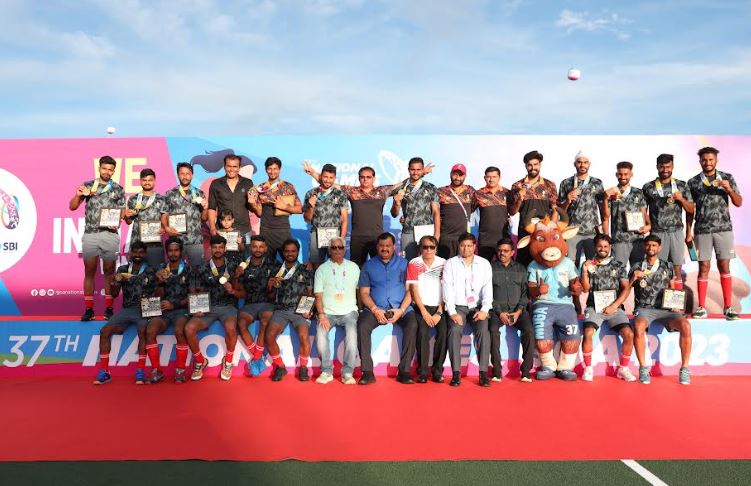 फतोर्दा के जेएलएन स्टेडियम में सर्विसेज ने पुरुष फुटबॉल में मणिपुर को 3-1 से हराकर स्वर्ण पदक जीता। इससे पहले दिन में, पिछले संस्करण के रजत पदक विजेता केरल ने निर्धारित समय तक दोनों टीमों के गोलरहित बराबरी पर रहने के बाद शूटआउट में पंजाब को हराकर कांस्य पदक जीता।