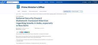इजराइल की राष्ट्रीय सुरक्षा परिषद ने भारत में रह रहे अपने नागरिकों को भीड़भाड़ वाली जगहों जैसे मॉल और बाजार पर जाने से बचने की सलाह दी है। यहूदियों और इजराइलियों के रूप में पहचाने जाने वाले स्थानों पर भी न जाने की सलाह दी गई है। सार्वजनिक स्थानों मसलन होटल और पब आदि में सतर्क रहने को कहा है। इसमें कहा गया है कि सार्वजनिक तौर पर इजराइली प्रतीकों को प्रदर्शित करने से बचें। बड़े आयोजनों में हिस्सा लेने से परहेज करें। इसके अलावा सोशल मीडिया पर यात्रा कार्यक्रम के साथ-साथ यात्रा तस्वीरें अपलोड न करें।