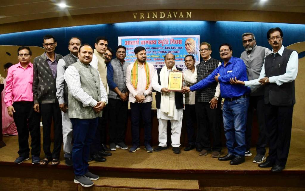 रायपुर । वर्ल्ड ब्राह्मण फेडरेशन छग व सर्व युवा ब्राह्मण परिषद के संयुक्त तत्वाधान में आचार्य चाणक्य स्मृति दिवस का आयोजन 14 जनवरी को वृन्दावन हॉल में किया गया। कार्यक्रम में आचार्य चाणक्य के जीवन एवं सिद्धान्तों पर व्याख्यान, विप्र विधायक सम्मान एवं धार्मिक प्रश्नोत्तरी प्रतियोगिता का आयोजन किया गया।