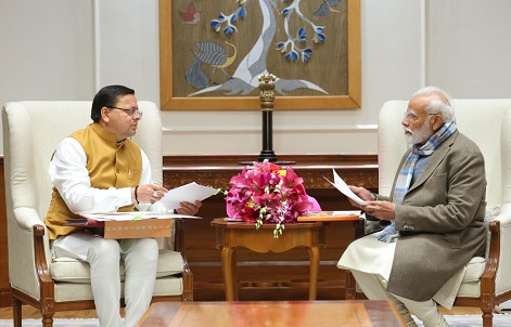 नई दिल्ली, 18 जनवरी । उत्तराखंड के मुख्यमंत्री पुष्कर सिंह धामी ने गुरुवार को दिल्ली पहुंचकर प्रधानमंत्री मोदी से मुलाकात की है। इस दौरान उन्होंने राज्य में चल रहे विकास कार्यों के बारे में प्रधानमंत्री को अवगत कराया है