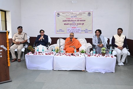 स्वामी मैथिलीशरण महाराज द्वारा अपने उद्बोधन में रामायण के विभिन्न प्रसंगों की सहायता से बंदीगण को सद्मार्ग पर चलने के लिए प्रेरित किया गया। रावण द्वारा विभीषण को लंका से निकाले जाने के प्रसंग का उल्लेख करते हुए उनके द्वारा यह बताया गया कि विभीषण ने तत्काल रावण कटु वचन न कहते हुए उन्हें पितातुल्य बताते हुए रामजी द्वारा उनके कल्याण की ही बात की गई थी। इस प्रसंग में विभीषण ने तत्काल भावावेश में कार्य नहीं किया था, भावावेश में किए गए कार्य ही अधिकांशतः गलत होते है। स्वामी मैथलीशरण द्वारा बंदीगण को अभिरक्षा के दौरान मिले समय का उपयोग चिन्तन के लिए करने के लिए भी प्रेरित किया गया, ताकि बंदीगण अभिरक्षा से बाहर आने पर सही मार्ग पर चल सके। उन्होंने यह भी बताया कि वर्तमान काल ही एक मात्र काल है अर्थात् मनुष्य को न तो भविष्य की चिंता करनी चाहिए न ही भूतकाल में हुए बातों को याद करना चाहिए, वर्तमान में प्रत्येक कार्य अच्छे से करना चाहिए। स्वामी जी ने यह भी बताया कि सम्पूर्ण रामायण में श्रीराम जी ने न तो एक भी कार्य स्वयं की इच्छा से किया न ही अपना निर्णय दूसरों पर थोपा, फिर भी राम राज्य की स्थापना की। इसके पीछे राम जी द्वारा दूसरों के सद्गुणों को आत्मसात करना तथा दुर्गणों को त्यागना बताया और प्रत्येक व्यक्ति को यहीं करने की सलाह दी।