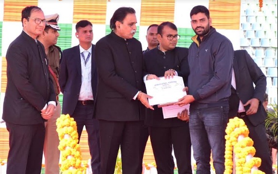 राजनांदगांव । गणतंत्र दिवस के अवसर पर विधायक रायपुर पश्चिम राजेश मूणत ने दिग्विजय स्टेडियम राजनांदगांव में आयोजित जिला स्तरीय मुख्य समारोह में उत्कृष्ट कार्य करने के लिए जनसंपर्क विभाग के सहायक सूचना अधिकारी प्रवीण रंगारी एवं सहायक ग्रेड-3 आनंद सागर चतुर्वेदी को प्रतीक चिन्ह एवं प्रशस्ति पत्र प्रदान कर सम्मानित किया। उल्लेखनीय है कि जनसंपर्क विभाग के सहायक सूचना अधिकारी प्रवीण रंगारी को शासकीय कार्य के प्रति निष्ठापूर्वक, उत्कृष्ट कार्य एवं शासन की जनकल्याणकारी योजनाओं का प्रचार-प्रसार तथा विधानसभा निर्वाचन 2023 में विशेष योगदान के लिए सम्मानित हुए। इसी तरह सहायक ग्रेड-3 आनंद सागर चतुर्वेदी को शासन की जनकल्याणकारी योजनाओं के प्रसार-प्रसार तथा विधानसभा निर्वाचन 2023 में विशेष योगदान के लिए सम्मानित किया गया। इस अवसर पर आईजी राजनांदगांव राहुल भगत, कलेक्टर संजय अग्रवाल, जिला पंचायत सीईओ अमित कुमार, एसडीएम अरूण वर्मा एवं अन्य अतिथिगण उपस्थित थे।