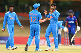 भारत ने पहले बल्लेबाजी करते हुए 50 ओवर में 5 विकेट पर दो सौ 97 रन बनाए। कप्तान उदय सहारन ने सौ रन और सचिन धास ने एक सौ 16 रन बनाए। भारत की ओर से सौम्य पांडे ने 4 विकेट लिए। सचिन धास को प्लेयर ऑफ द मैच घोषित किया गया। मंगलवार को सेमीफाइनल में, भारत का सामना मेज़बान दक्षिण अफ्रीका से होगा।