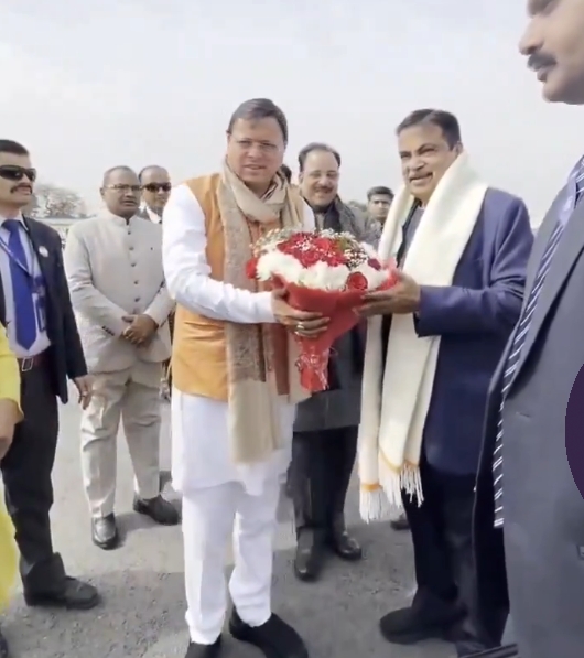 देहरादून/उधमसिंह नगर, 13 फरवरी । केंद्रीय मंत्री नितिन गडकरी उत्तराखंड दौरे मंगलवार को ऊधम सिंह नगर जनपद के पंतनगर एयरपोर्ट पहुंचे। इस दौरान मुख्यमंत्री पुष्कर सिंह धामी ने केंद्रीय मंत्री गडकरी को बुके देकर स्वागत किया। पंतनगर एयरपोर्ट पर सीएम धामी और केंद्रीय मंत्री नितिन गडकरी गार्ड ऑफ ऑनर लिया।