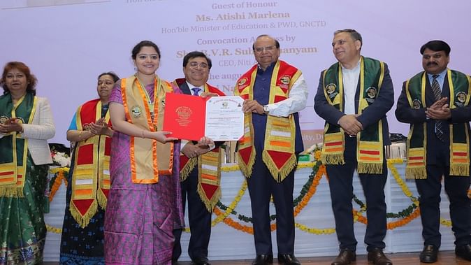 यूनिवर्सिटी के पूर्व कुलसचिव रहे स्वर्गीय बीपी जोशी की स्मृति में दिया जाने वाला स्वर्ण पदक डॉ हेमंत कुमार आर्या को और सिद्धार्थ खिटोलिया अवार्ड मनीषा पुरी को दिया गया। इस अवसर पर बतौर मुख्य अतिथि नीति आयोग के मुख्य कार्यकारी अधिकारी बीवी.आर. सुब्रह्मण्यम ने छात्रों को संबोधित करते हुए कहा कि उच्च शिक्षा के क्षेत्र में हम दुनिया में दूसरे नंबर पर हैं। अपने देश में हर सप्ताह एक यूनिवर्सिटी खुल रही है। वर्तमान में देश की करीब 1,200 यूनिवर्सिटी में 4.2 करोड़ छात्र उच्च शिक्षा ग्रहण कर रहे हैं। उन्होंने कहा कि 2047 तक हम दुनिया में नंबर एक पर हो जाएंगे। तब हमारा लक्ष्य यूनिवर्सिटी और कॉलेज में 9 करोड़ छात्रों को दाखिला देने का है।