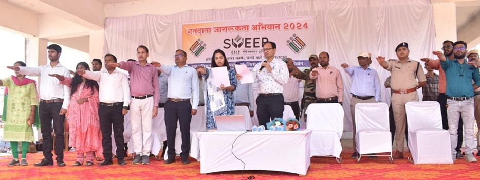 राजनांदगांव । कलेक्टर एवं जिला निर्वाचन अधिकारी संजय अग्रवाल एवं जिला पंचायत सीईओ सुरूचि सिंह आज स्वामी आत्मानंद उत्कृष्ट अंग्रेजी माध्यम विद्यालय छुरिया में लोकसभा निर्वाचन 2024 में शत-प्रतिशत मतदान के लक्ष्य के लिए आयोजित मतदाता जागरूकता स्वीप कार्यक्रम में शामिल हुए। कलेक्टर अग्रवाल ने कार्यक्रम में उपस्थित स्वसहायता समूह की महिलाएं, मितानीन एवं बीएलओ, शिक्षक एवं वर्चुअल माध्यम से जुड़े 20 हजार नागरिकों को शत-प्रतिशत मतदान करने के लिए छत्तीसगढ़ी में शपथ दिलाई। कलेक्टर अग्रवाल ने लोकतंत्र में मतदान के महत्व के संबंध में जानकारी दी। मतदाता जागरूकता कार्यक्रम अंतर्गत मानव श्रृंखला एवं रंगोली के माध्यम से शत-प्रतिशत मतदान करने का संदेश दिया गया। कार्यक्रम स्थल में लगभग 1 हजार मतदाताओं के साथ-साथ वर्चुअल माध्यम से छुरिया जनपद पंचायत अंतर्गत शामिल 118 ग्राम पंचायतों से लगभग 20 हजार से अधिक मतदाताओं द्वारा शत-प्रतिशत मतदान करने का संकल्प लिया गया। इस दौरान एसडीएम डोंगरगांव मनोज कुमार, सीईओ जनपद पंचायत छुरिया नारायण प्रसाद बंजारा, तहसीलदार विजय कोठारी, मुख्य नगर पालिका अधिकारी नगर पंचायत छुरिया सचिन गुप्ता, विकासखंड शिक्षा अधिकारी प्रशांत चितवरकर, परियोजना अधिकारी कमलावती मरकाम, महिला बाल विकास विभाग छुरिया एवं अन्य विभागीय अधिकारी-कर्मचारी कार्यक्रम में शामिल हुए ।