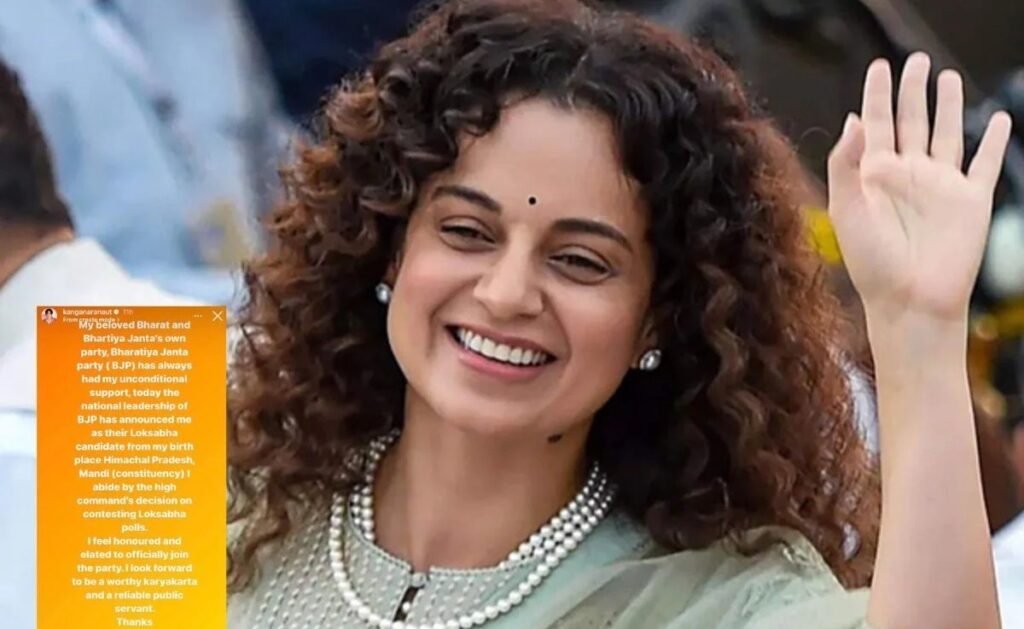 इसके बाद कंगना ने सोशल मीडिया पर पोस्ट कर पार्टी का शुक्रिया अदा किया है। कंगना लिखती हैं, “मेरे प्यारे भारत और अपनी पार्टी भारतीय जनता पार्टी को मैं हमेशा बिना शर्त के समर्थन करती आ रही हूं। भाजपा के शीर्ष नेतृत्व ने मुझे मेरी जन्मभूमि मंडी से लोकसभा उम्मीदवार घोषित किया है। मैं हाईकमान के इस फैसले का पालन करूंगी। मैं आधिकारिक तौर पर पार्टी में शामिल होकर सम्मानित और बहुत उत्साहित महसूस कर रही हूं। मैं एक कर्मठ कार्यकर्ता और भरोसेमंद लोक सेवक बनने का प्रयास करूंगी।