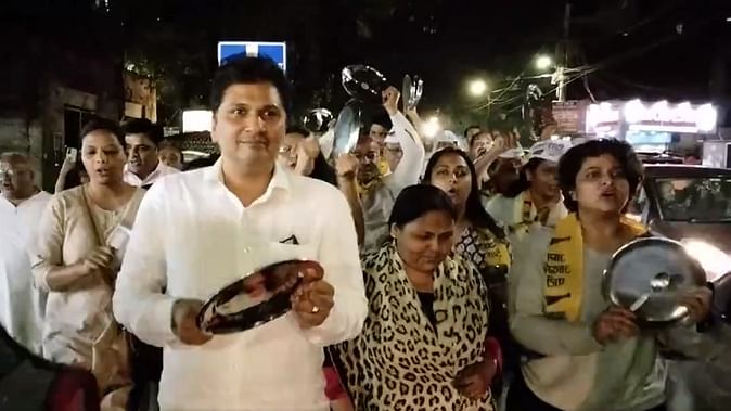 मंगलवार रात में आप नेता और दिल्ली के मंत्री सौरभ भारद्वाज ग्रेटर कैलाश इलाके में ‘केजरीवाल को रिहा करो’ के नारे के साथ थाली बजाते हुए निकल पड़े।