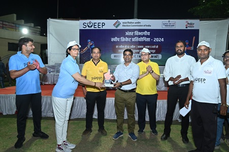 उद्घाटन मैच के मुख्य अतिथि रायपुर संभागायुक्त डॉ संजय अलंग रहे, जिन्होंने समस्त खिलाड़ियों एवं दर्शक दीर्घा में उपस्थित दर्शकों को मतदान के प्रति शपथ दिलाई। शपथ पश्चात सभी टीमों के खिलाड़ियों द्वारा मार्चपास्ट किया गया। तत्पश्चात संभागायुक्त डॉ संजय अलंग ने टॉस कराते हुए सभी खिलाड़ियों को खेल भावनाओं के साथ खेलने के लिए शुभकामनाएं देते हुए कहा कि मैदान से क्रिकेट मैच खेलते हुए मतदान करने का संदेश देने के उदद्ेश्य से प्रारंभ हो रहे अंतरविभागीय क्रिकेट टूनामेंट निश्चित ही मतदाताओं के बीच सकारात्मक संदेश पहुंचाएगी। ज्ञात हो कि बारह दिनों तक चलने वाले इस रोमांचक क्रिकेट टूनामेंट का आज पहला मैच कलेक्ट्रेट एवं निर्वाचन अधिकारियों और महिला एवं बाल विकास के अधिकारियों के बीच हुआ। जिसमें महिला बाल विकास के खिलाड़ियों ने पहले इनिंग में बैटिंग करते हुए अपने प्रतिद्वदी टीम को 132 रनों का लक्ष्य दिया। जिसमें कलेक्टर एवं जिला निर्वाचन अधिकारियों के टीम ने लक्ष्य का पीछा करते हुए। पांच विकेट के नुकसान से मात्र 80 रन बनाने में सफल रहे। इस प्रकार महिला एवं बाल विकास विभाग ने 52 रन से शानदार जीत हासिल की। महिला एवं बाल विकास विभाग के खिलाडी यशवंत यादव 49 रन बनाकर मैन ऑफ द मैच का खिताब अपने नाम किया। इसी प्रकार महिला एवं बाल विकास विभाग की खिलाड़ी सुश्री अंबा पटेल शानदार फिल्ंिडग के कारण फिल्डर ऑफ द मैच का खिताब अपने नाम की। कलेक्टर एवं जिला निर्वाचन अधिकारी टीम की अगुवाई करते हुए कप्तान के रूप में डॉ गौरव सिंह ने मैच में जबरदस्त बैटिंग करते हुए समस्त खिलाड़ियों के बीच खेल भावना एवं सकारात्मक ऊर्जा का संचार किया। 10-10 ओवरों के मैच में हर ओवर का निर्वाचन प्रक्रिया के अनुरूप नामकरण किया गया था, जिसमें क्रमशः स्वीप ओवर, अधिसूचना ओवर, ईवीएम ओवर, एफएसटी ओवर, एसएसटी ओवर, वीवीपीईटी ओवर इत्यादि। डॉ गौरव सिंह ने कहा कि आज स्वीप कार्यक्रम के तहत जिला प्रशासन रायपुर द्वारा अंतरविभागीय क्रिकेट प्रतियोगिता का पहला विजयी पारी खेल कर महिला बाल विकास के खिलाड़ियों ने मतदान के प्रति सकारात्मक संदेश दिए। जिला निर्वाचन अधिकारी डॉ गौरव सिंह ने कहा कि हार और जीत खेल के अभिन्न भाग है, उन्होंने समस्त खिलाड़ियों को बधाई एवं शुभकामनाएं दी। एसपी श्री संतोष सिंह ने खिलाड़ियों को पुरस्कृत किया एवं शुभकामनाएं दी।