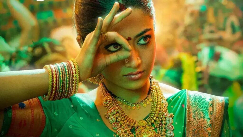 इसमें देखा जा सकता है कि रश्मिका ने हरे रंग की साड़ी पहनी हुई है। वह हाथों में चूड़ियां और गले में आभूषण के साथ पारंपरिक पोशाक पहनी हैं। उनके गले में मंगलसूत्र और मांग में सिन्दूर भी नजर आ रहा है। ‘पुष्पा-2 में श्रीवल्ली का ये लुक देख फैंस हैरान रह गए हैं।