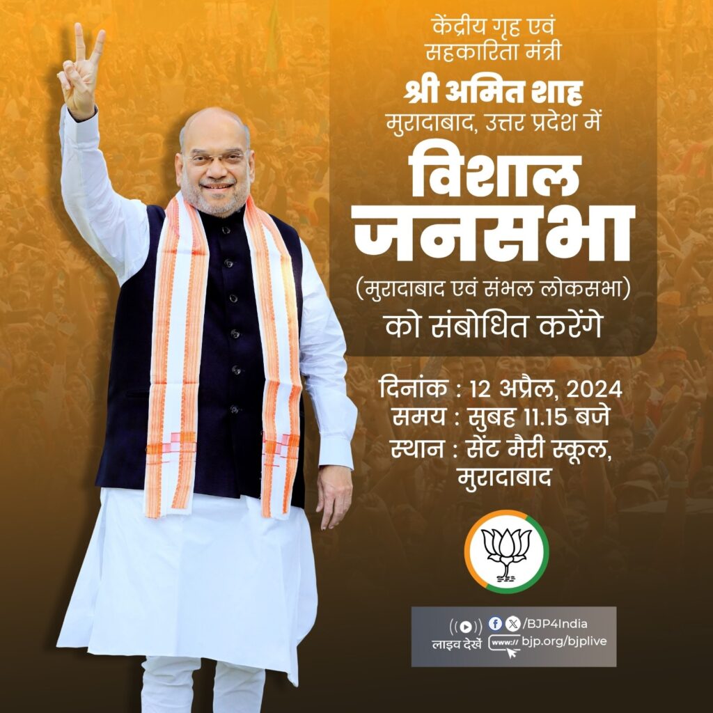 भाजपा के एक्स हैंडल के अनुसार, केंद्रीय गृहमंत्री अमित शाह चुनाव प्रचार की शुरुआत सुबह उत्तर प्रदेश से करेंगे। वो उत्तर प्रदेश में मुरादाबाद के सैंट मैरी स्कूल में सुबह 11ः15 बजे भाजपा की जनसभा को संबोधित करेंगे। शाम को वो तमिलनाडु में होंगे। अमित शाह मदुरै लोकसभा क्षेत्र में शाम 5ः30 बजे रोड शो करेंगे।