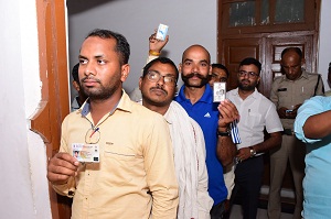 अनिवार्य सेवा में लगे ड्राइवर उमेन्द्र सिंह, राजेश यादव, कमलेश सिंह, कपिल नेताम, रामाधार ने डाक मतपत्र के माध्यम से अपने मताधिकार का उपयोग किया। उमेन्द्र सिंह, राजेश यादव, कमलेश सिंह, कपिल नेताम, रामाधार, अशोक साहू ने बताया कि वे स्कूली वाहन चलाते हैं। जिनकी ड्यूटी निर्वाचन के अंतर्गत वाहन चालक के रूप में लगी है। ड्राइवर ने बताया कि निर्वाचन कार्य के साथ डाक मतपत्र के माध्यम से मतदान करने का अवसर मिला है। उल्लेखनीय है कि जिला कार्यालय कलेक्टर परिसर राजनांदगांव कक्ष क्रमांक 51 में लोकसभा निर्वाचन में निर्वाचन दायित्व से जुड़े मतदान दलों, सेक्टर आफिसर, एफएसटी, एसएसटी, वीएसटी और विभिन्न विभागों के अधिकारी-कर्मचारी तथा गृह निर्वाचन क्षेत्र से दूर अन्य जिले में कार्यरत अधिकारी एवं कर्मचारियों को अपने मताधिकार का प्रयोग करने के लिए डाक मतपत्र के जरिए मतदान की सुविधा प्रदाय की गई है।