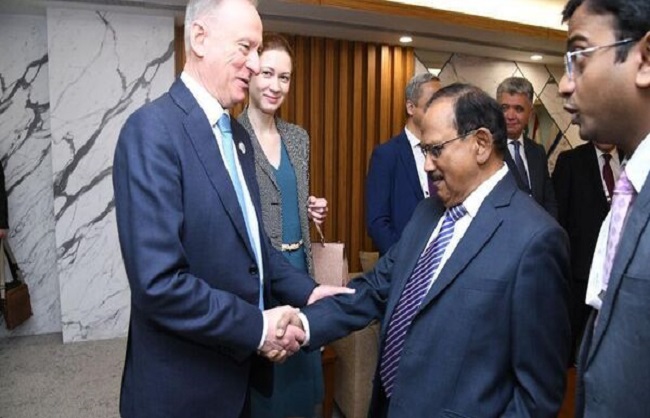 मॉस्को, 25 अप्रैल । भारत के राष्ट्रीय सुरक्षा सलाहकार अजित डोभाल ने बुधवार को रूस के राष्ट्रीय सुरक्षा सलाहकार निकोलाई पेत्रुशेव से द्विपक्षीय सहयोग पर जारी प्रगति की समीक्षा की। साथ ही आपसी हितों के महत्वपूर्ण मुद्दों पर विचार-विमर्श किया। डोभाल की यह इस माह पेत्रुशेव से दूसरी बार मुलाकात है।