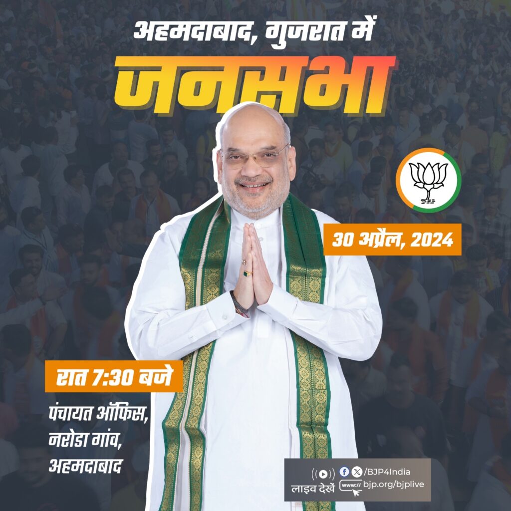 भाजपा के एक्स हैंडल के अनुसार, भाजपा के वरिष्ठ नेता अमित शाह सबसे पहले सुबह 10 बजे गुवाहाटी (असम) स्थिति भाजपा कार्यालय में संवाददाता सम्मेलन को संबोधित करेंगे। इसके बाद शाह पश्चिम बंगाल जाएंगे। वहां दोपहर 12 बजे मूलपुर कटवा में पथारी के विष्णुपुर फुटबाल मैदान में भाजपा की जनसभा को संबोधित करेंगे। आखिर में वो गृहराज्य गुजरात पहुंचेंगे। शाह अहमदाबाद के नरोड़ा गांव की जनसभा में हिस्सा लेंगे। शाह की यह जनसभा पंचायत ऑफिस में शाम साढ़े सात बजे होनी है।