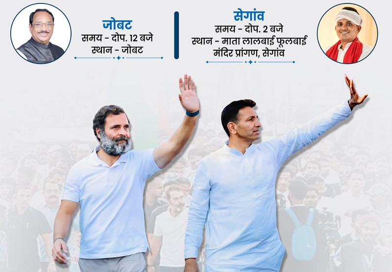 कांग्रेस कार्यालाय के अनुसार, राहुल गांधी दोपहर 12 बजे आदिवासी बहुल अलीराजपुर जिले के जोबट पहुंचेंगे और यहां मालवांचल की रतलाम-झाबुआ सीट से कांग्रेस उम्मीदवार कांतिलाल भूरिया के समर्थन में जनसभा को संबोधित करेंगे। इसके बाद राहुल गांधी दोपहर दो बजे खरगोन जिले के सेगांव में निमाड़ अंचल की खरगोन-बड़वानी लोकसभा सीट से पार्टी उम्मीदवार पोरलाल खरते के समर्थन में जनसभा को संबोधित करेंगे।