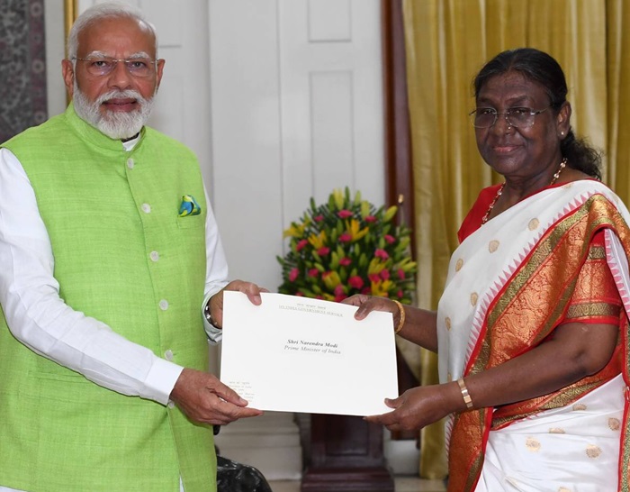 नई दिल्ली, 5 जून । प्रधानमंत्री नरेन्द्र मोदी ने बुधवार को राष्ट्रपति द्रौपदी मुर्मू से मुलाकात की और मंत्रिपरिषद परिषद के साथ अपना इस्तीफा दिया। राष्ट्रपति ने इस्तीफे को स्वीकार कर लिया और नरेन्द्र मोदी और मंत्रिपरिषद को नई सरकार के गठन तक पद पर बने रहने का अनुरोध किया।