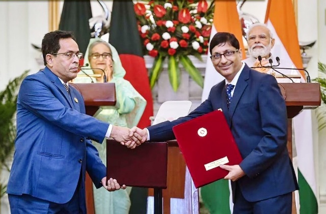 नई दिल्ली, 22 जून । भारत और बांग्लादेश ने शनिवार को दिल्ली के हैदराबाद हाउस में प्रधानमंत्री नरेन्द्र मोदी और बांग्लादेश की प्रधानमंत्री शेख हसीना की उपस्थिति में डिजिटल क्षेत्र में पार्टनरशिप और ग्रीन पार्टनरशिप सहित कई समझौतों पर हस्ताक्षर किए।