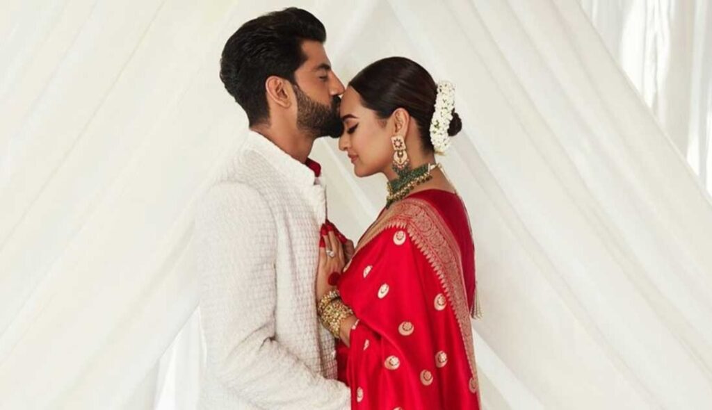 सोनाक्षी और जहीर की शादी में बॉलीवुड सेलिब्रिटीज भी शामिल हुए थे। शादी में सोनाक्षी ने सिंपल लुक में अपनी मां की 44 साल पुरानी साड़ी पहनी थी। जहीर ने भी कुर्ता पहना था। हालांकि वेडिंग रिसेप्शन में सोनाक्षी ने सबका ध्यान अपनी ओर खींचा। बॉलीवुड एक्ट्रेसेस के फीके रंग और रिच लहंगे के ट्रेंड को बदलते हुए दुल्हन सोनाक्षी ने लाल रंग को चुना। वेडिंग रिसेप्शन में सोनाक्षी लाल साड़ी में दुल्हन की तरह लग रही थीं। बालों में जूड़ा और कम ज्वैलरी के साथ वह सिंपल लुक में नजर आईं। दुल्हन बनीं सोनाक्षी के इस लुक ने सबका ध्यान खींचा।