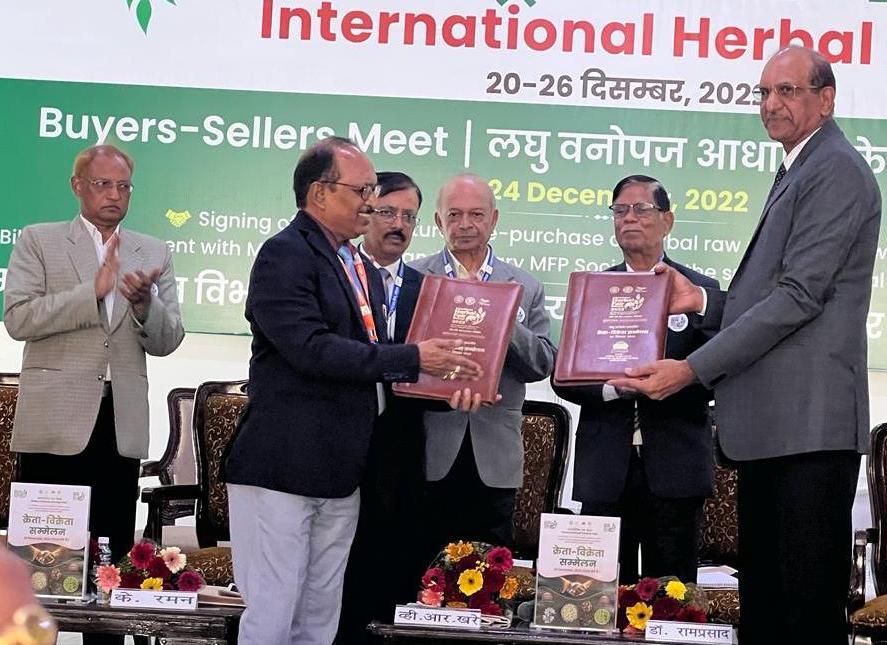 रायपुर। अंतर्राष्ट्रीय वन मेला में लघु वनोंपज आधारित क्रेता-विक्रेता सम्मेलन में छत्तीसगढ़ लघु वनोपज संघ और मध्यप्रदेश लघु वनोपज संघ के मध्य 6 करोड़ रूपए का व्यवसायिक अनुबंध हुआ। छतीसगढ़ वनोपज संघ के विशेष प्रबंध संचालक एस.एस. बजाज और विन्ध हर्बल्स की ओर से एमपीएमएफपी के सीईओ डॉ. दिलीप कुमार ने एमओयू पर हस्ताक्षर किए। इसके अलावा 28 करोड़ 50 लाख रूपये का एमएफपीपीएआरसी और विभिन्न संस्थाओं के बीच व्यापारिक अनुबंध भी किए गए। इस प्रकार कुल 34.50 करोड़ रूपए का एमओयू हुआ। यह अंतर्राष्ट्रीय वन मेला मध्यप्रदेश की राजधानी भोपाल में 20 से 26 दिसम्बर तक आयोजित किया गया।