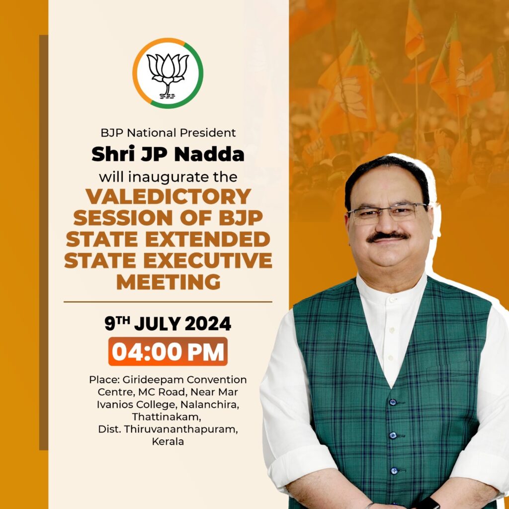भाजपा के एक्स हैंडल के अनुसार, नड्डा शाम चार बजे तिरुवनंतपुरम के गिरिदीपम कन्वेंशन सेंटर में विस्तारित राज्य कार्यकारिणी की बैठक के समापन सत्र को संबोधित करेंगे। बताया गया है कि नड्डा आज पूर्वाह्न 11:40 बजे तिरुवनंतपुरम पहुंचेंगे। पार्टी के वरिष्ठ पदाधिकारी उनका स्वागत करेंगे। इसके बाद भाजपा अध्यक्ष दोपहर 12:20 बजे एक महत्वपूर्ण संगठनात्मक बैठक में हिस्सा लेंगे।