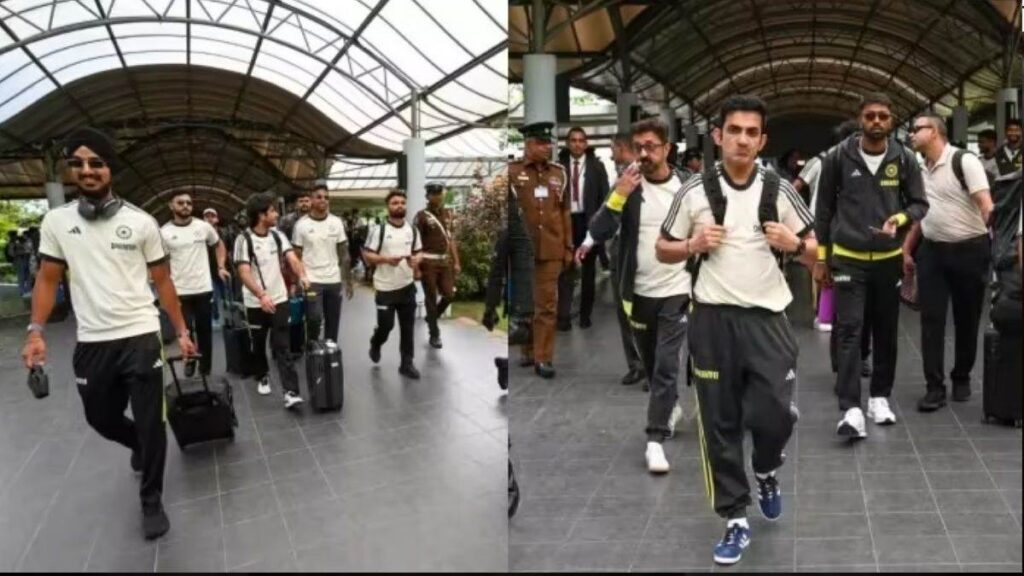 टीम इंडिया 3 मैचों की टी20 सीरीज खेलने के लिए श्रीलंका पहुंच गई है। इस दौरान टीम के साथ नए हेड कोच गौतम गंभीर और टी20 के नए कप्तान सूर्यकुमार यादव नजर आए।सोमवार को टीम के साथ श्रीलंका रवाना होने से पहले गौतम गंभीर ने चीफ सिलेक्टर अजीत अगरकर के साथ प्रेस कॉन्फ्रेंस की। टीम के कोलंबो पहुंचते ही उनको कड़ी सुरक्षा के बीच होटल ले जाया गया।