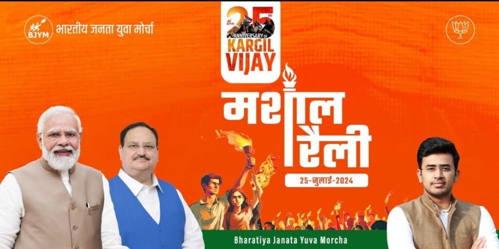 भाजयुमो कारगिल विजय दिवस की 25वीं वर्षगांठ के उपलक्ष्य पर देशभर में विभिन्न कार्यक्रमों का आयोजन कर रहा है। यह मशाल रैली इसी शृंखला की कड़ी है। उल्लेखनीय है कि भारत-पाकिस्तान के बीच हुए कारगिल युद्ध में हमारे वीर सैनिकों ने 26 जुलाई, 1999 को विजय प्राप्त की थी।
