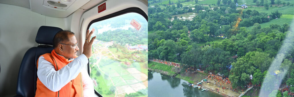 कबीरधाम / रायपुर 5 अगस्त । मुख्यमंत्री विष्णु देव साय ने आज साेमवार काे कबीरधाम जिले के भोरमदेव में शिव भक्तों पर हेलीकॉप्टर से पुष्प वर्षा की। इस दौरान उपमुख्यमंत्री विजय शर्मा साथ थे।