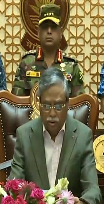 राष्ट्रपति की तरफ से जारी विज्ञप्ति के अनुसार अंतरिम सरकार के गठन के उद्देश्य से राष्ट्रपति मोहम्मद सहाबुद्दीन, थल सेनाध्यक्ष, नौसेना और वायु सेना के प्रमुख और विभिन्न राजनीतिक दलों के नेताओं और नागरिक की अध्यक्षता में बंगभवन में एक बैठक आयोजित की गई। देश के समाज प्रतिनिधि बैठक में आरक्षण विरोधी आंदोलन में मारे गए लोगों की याद में शोक प्रस्ताव लिया गया और उनकी दिवंगत आत्माओं की शांति और क्षमा के लिए प्रार्थना की गई। बैठक में तुरंत अंतरिम सरकार बनाने का फैसला किया गया। बैठक में सभी से देश में कानून-व्यवस्था की स्थिति को नियंत्रित करने के लिए धैर्य और सहनशीलता बरतने का आग्रह किया गया और सेना को लूटपाट और हिंसक गतिविधियों से रोकने के लिए सख्त कार्रवाई करने का निर्णय लिया गया।