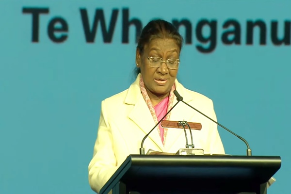 न्यूजीलैंड की दो दिवसीय राजकीय यात्रा पर आईं राष्ट्रपति मुर्मू आज सुबह राजधानी वेलिंगटन पहुंचीं। वेलिंगटन के गवर्नमेंट हाउस में न्यूजीलैंड की गवर्नर जनरल डेम सिंडी कीरो की मौजूदगी में उनका औपचारिक स्वागत किया गया और रॉयल गार्ड ऑफ ऑनर दिया गया। औपचारिक स्वागत में पारंपरिक माओरी संस्कृति का प्रदर्शन किया गया। राष्ट्रपति मुर्मू को गवर्नर जनरल ने होंगी अभ्यास के लिए आमंत्रित किया। उन्होंने हाका प्रदर्शन भी देखा।