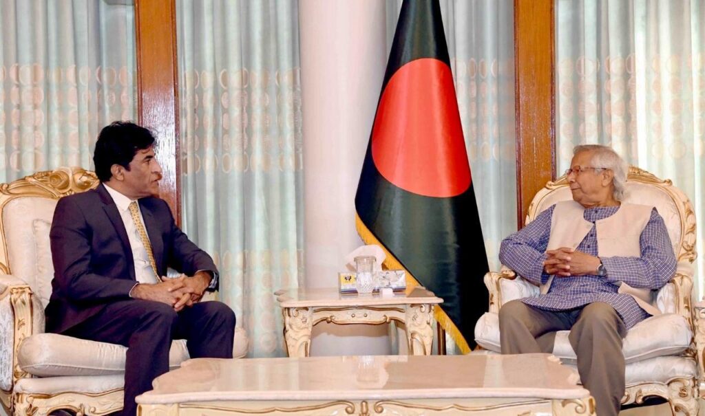 ढाका, 28 अगस्त । बांग्लादेश सरकार के मुख्य सलाहकार प्रोफेसर मुहम्मद यूनुस ने मंगलवार को पाकिस्तान के उच्चायुक्त सैयद अहमद मारोफ से मुलाकात की।