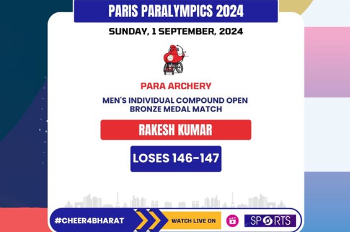 पेरिस, 2 सितंबर । पेरिस पैरालिंपिक 2024 में सोमवार (भारतीय समयानुसार) को पुरुषों के पैरा तीरंदाजी व्यक्तिगत कंपाउंड ओपन कांस्य पदक मैच के रोमांचक समापन में राकेश कुमार को दिल तोड़ने वाला अंत देखने को मिला।