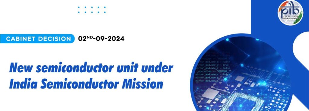 भारत में सेमीकंडक्टर्स और डिस्प्ले मैन्युफैक्चरिंग ईको सिस्टम के विकास के लिए कार्यक्रम 21 दिसंबर 2021 को कुल 76,000 करोड़ के परिव्यय के साथ अधिसूचित किया गया था। जून, 2023 में केंद्रीय मंत्रिमंडल ने गुजरात के साणंद में सेमीकंडक्टर यूनिट स्थापित करने के पहले प्रस्ताव को मंजूरी दे दी थी। फरवरी, 2024 में तीन और सेमीकंडक्टर इकाइयों को मंजूरी दी गई। टाटा इलेक्ट्रॉनिक्स धोलेरा, गुजरात में एक सेमीकंडक्टर फैब और असम के मोरीगांव में एक सेमीकंडक्टर इकाई स्थापित कर रही है। सीजी पावर भी गुजरात के साणंद में एक सेमीकंडक्टर इकाई स्थापित कर रही है।