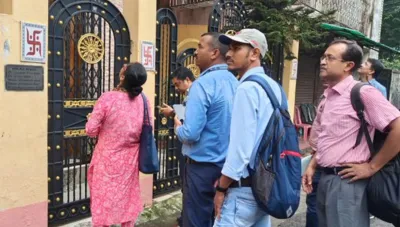 कुछ देरबाद टीम दोबारा वहां पहुंची। अभी भी घर के बाहर दरवाजा खुलने का इंतजार कर रहे हैं। संदीप के घर के बाहर केंद्रीय बलों के जवान भी तैनात हैं। ईडी ने शुक्रवार सुबह तीन और लोगों के घरों पर छापा मारा है। हावड़ा में बिप्लब सिंह और कौशिक कोल के घर पर छापेमारी चल रही है, जबकि सुभाषग्राम में प्रसून चटर्जी के घर पर ऐसी ही कार्रवाई की गई है।