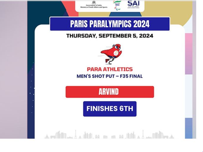 पेरिस, 6 सितंबर। भारत के अरविंद ने पेरिस पैरालिंपिक में अपने सीज़न के सर्वश्रेष्ठ थ्रो की स्ट्रीक बनाने के बाद भी, पुरुषों की शॉट पुट एफ 35 फ़ाइनल में को खाली हाथ रहे।