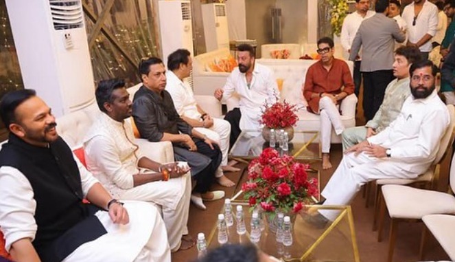 इस समय हर तरफ गणेशोत्सव की धूम देखने को मिल रही है। कलाकारों से लेकर बड़े नेताओं तक सभी के घर बप्पा का आगमन हो चुका है। हाल ही में बॉलीवुड के लगभग सभी कलाकार वर्षा बंगले पहुंचे और गणपति बप्पा के दर्शन किए। मुख्यमंत्री एकनाथ शिंदे के आवास पर शिल्पा शेट्टी, मृणाल ठाकुर, दिशा पटानी, सलमान खान, संजय दत्त, आर माधवन, सुनील शेट्टी, रोहित शेट्टी, आशा भोसले, उदित नारायण, गोविंदा, राजकुमार हिरानी, सोनाक्षी सिन्हा और कुछ अन्य बॉलीवुड कलाकार शामिल हुए।