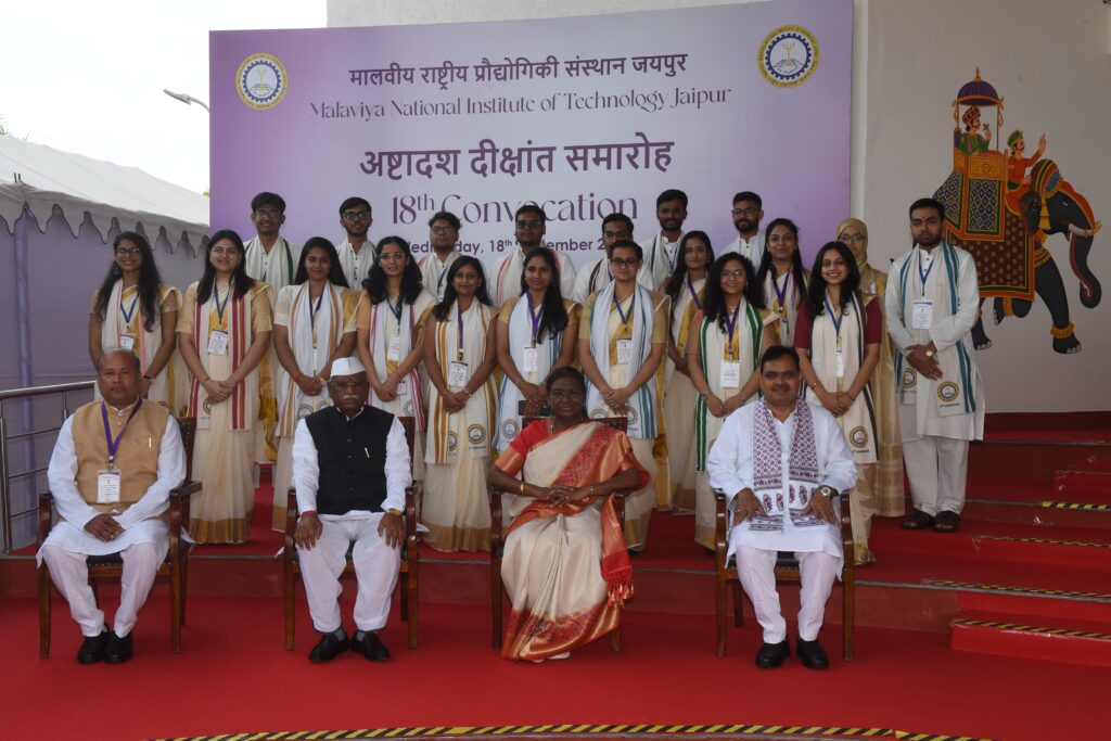 उन्होंने समारोह में 79 छात्रों को पीएचडी की उपाधि और 805 स्नातक एवं 477 स्नातकोत्तर के छात्रों को डिग्री प्रदान की। उन्होंने 20 स्वर्ण पदक भी प्रदान किए। उन्होंने अरावली छात्रावास का लोकार्पण भी किया। उन्हाेंने कहा कि रिसर्च और डवलपमेंट के क्षेत्र में महिलाओं की अधिक भागीदारी न केवल देश के सामाजिक और आर्थिक विकास के लिए महत्वपूर्ण है बल्कि हमारी बेटियों के जीवन की गुणवत्ता में सुधार के लिए भी आवश्यक है। हाल के वर्षों में लड़कियों के नामांकन में वृद्धि हुई है। यह भी एक सराहनीय तथ्य है कि एमएनआईटी की फैकल्टी में लगभग एक-तिहाई महिलाएं हैं। विश्वास है कि आने वाले वर्षों में यह अनुपात और भी बेहतर होगा। चौथी औद्योगिक क्रांति के इस दौर में चुनौतियों के साथ नए-नए अवसर भी आ रहे हैं। इन अवसरों का लाभ उठा कर भारत को टेक्नाेलाॅजी के क्षेत्र में अग्रणी राष्ट्र बनाने में हमारे तकनीकी संस्थानों की भूमिका अत्यंत महत्वपूर्ण है।