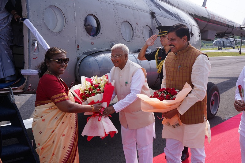 राष्ट्रपति मुर्मु का उज्जैन पहुंचने पर आत्मीय स्वागत किया गया। राष्ट्रपति की अगवानी राज्यपाल मंगुभाई पटेल, मुख्यमंत्री डॉ. यादव, मिनिस्टर इन वेटिंग उप मुख्यमंत्री जगदीश देवड़ा और उज्जैन के प्रभारी मंत्री गौतम टेटवाल ने की। इस अवसर पर महापौर मुकेश टटवाल, सांसद अनिल फिरोजिया, अपर मुख्य सचिव डॉ. राजेश राजौरा, संभाग आयुक्त संजय गुप्ता, आईजी संतोष कुमार सिंह, कलेक्टर नीरज कुमार सिंह और पुलिस अधीक्षक प्रदीप शर्मा ने भी किया।