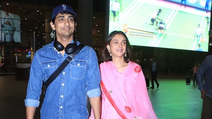 शादी के बाद अदिति और सिद्धार्थ वापस मुंबई आ गए हैं। उन्हें मुंबई एयरपोर्ट पर स्पॉट किया गया। अदिति और सिद्धार्थ शादी के बाद पहली बार कैमरे में कैद हुए। एयरपोर्ट पर उनकी तस्वीरें और वीडियो वायरल हो गए हैं। इस वीडियो में अदिति पिंक ड्रेस पहने नजर आ रही हैं। दुल्हन अदिति के इस लुक को देखकर फैंस भी हैरान रह गए हैं। पैपराजी ने इंस्टाग्राम पेज पर उनकी एयरपोर्ट तस्वीरें शेयर की हैं। फैंस ने अदिति और सिद्धार्थ को शुभकामनाएं दी हैं।