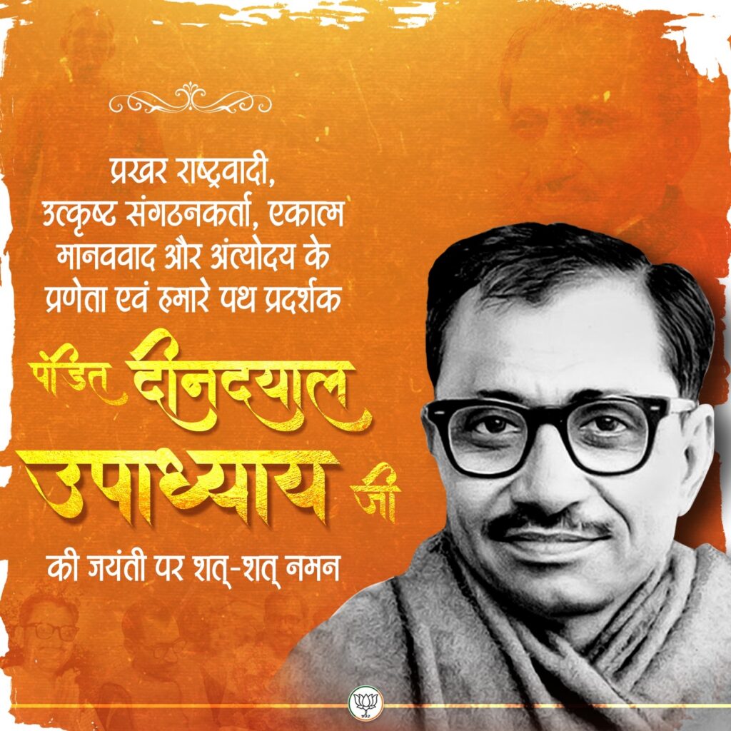 भाजपा ने उनका पुण्य स्मरण करते हुए एक और पोस्ट की। इसमें देशवासियों का आह्वान किया गया है, ” अंत्योदय एवं एकात्म मानववाद के प्रणेता पंडित दीनदयाल उपाध्याय की जयंती के अवसर पर 25 सितंबर को भाजपा सदस्यता महाअभियान का हिस्सा बनें। 88 00 00 2024 पर मिस्ड कॉल करें, भाजपा का सदस्य बनें।”
