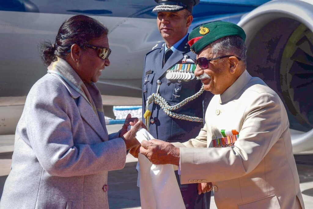 लद्दाख, 26 सितंबर । राष्ट्रपति द्रौपदी मुर्मु के लेह पहुंचने पर लद्दाख के उपराज्यपाल ब्रिगेडियर (डॉ.) बी.डी. मिश्रा (सेवानिवृत्त) और थल सेनाध्यक्ष जनरल मनोज पांडे ने उनका स्वागत किया। लद्दाख की पहली यात्रा पर उन्हें गार्ड ऑफ ऑनर दिया गया। इस दौरे में राष्ट्रपति मुर्मु दुनिया के सबसे ऊंचे व ठंडे स्थान सियाचिन ग्लेशियर भी जाएंगी और वहां तैनात जवानों से मिल कर उनका हौसला बढ़ाएंगी।
