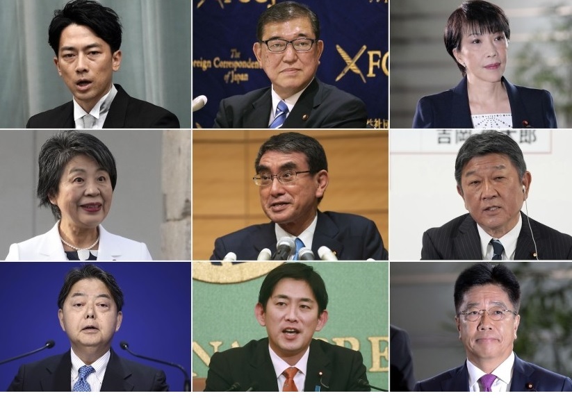 सभी नौ उम्मीदवार मौजूदा या पूर्व कैबिनेट मंत्री हैं। पूर्व रक्षामंत्री शिगेरू इशिबा मीडिया सर्वेक्षणों में लगातार नंबर एक पर हैं। पर्यावरण मंत्री शिंजिरो कोइजुमी लोकप्रिय पूर्व प्रधानमंत्री जुनिचिरो कोइजुमी के बेटे हैं। वह दूसरे पायदान पर हैं। आर्थिक सुरक्षा मंत्री साने ताकाइची मामूली अंतर से तीसरे स्थान पर हैं। विशेषज्ञों का कहना है कि इन्हीं तीन में से दो के रनऑफ में आगे बढ़ने की उम्मीद है, लेकिन विजेता की भविष्यवाणी करना मुश्किल है, क्योंकि रनऑफ पार्टी के दिग्गजों के बीच बैकरूम डील से प्रभावित हो सकता है।