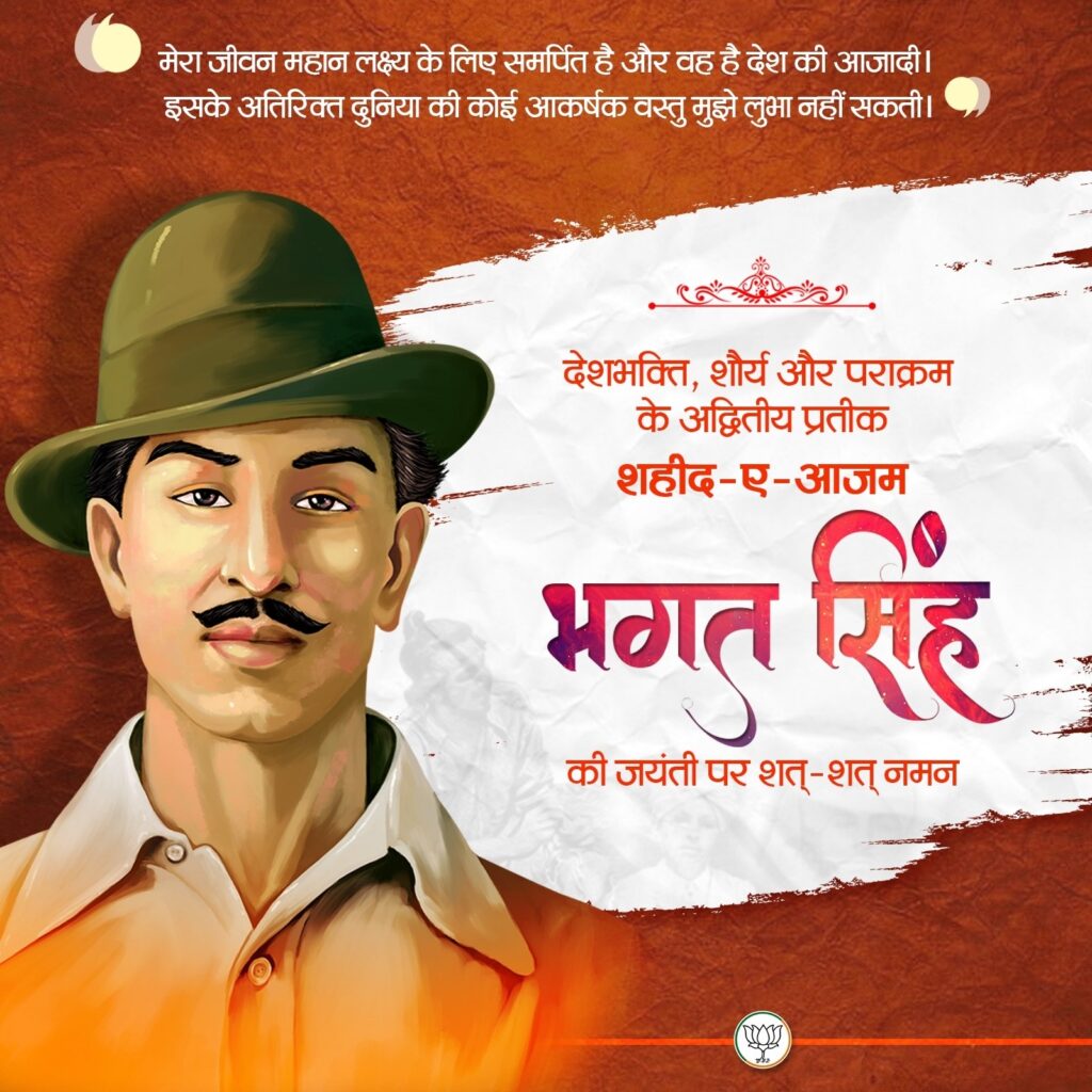 उल्लेखनीय है कि शहीद-ए-आजम भगत सिंह का जन्म पंजाब के बंगा (अब पाकिस्तान) में 28 सितंबर, 1907 को हुआ था। उन्होंने अंग्रेजों की गुलामी की जंजीरों से भारत माता को मुक्त कराने की लड़ाई लड़ी। उनको कम उम्र में 23 मार्च 1931 को लाहौर जेल में मौत की सजा दे दी गई। भगत सिंह के प्रेरक नारा ‘इंकलाब जिंदाबाद’ देशभक्ति की भावना को जगाता है।