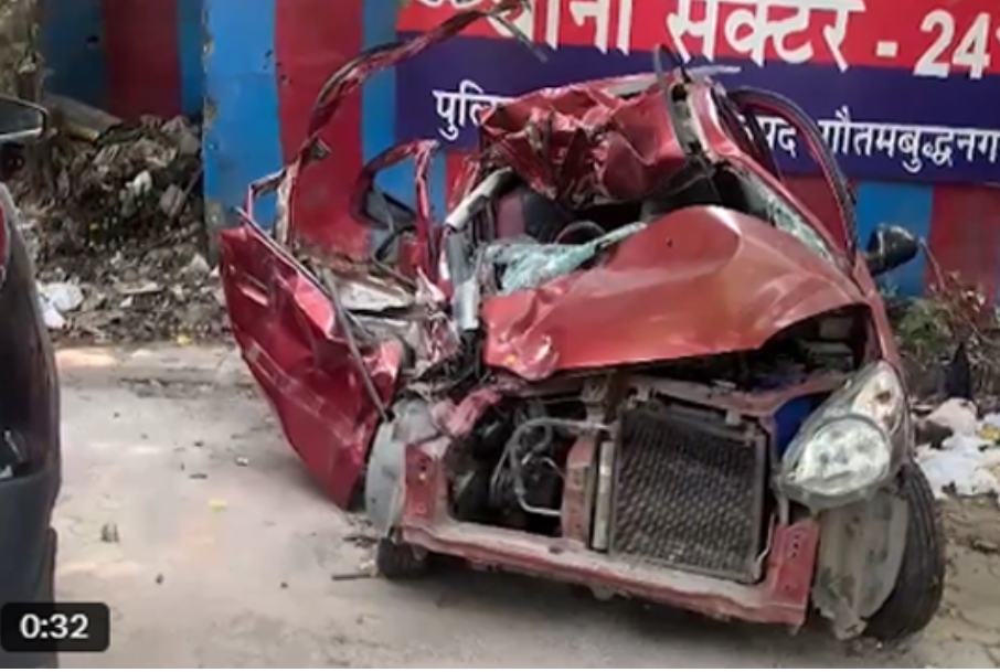 गौतमबुद्धनगर, 30 सितंबर । थाना सेक्टर -24 क्षेत्र के सेक्टर -11 में रविवार देर रात तेज रफ़्तार ट्रैक्टर ने कार को टक्कर मार दी। टक्कर इतनी जबरदस्त थी कि कार के परखच्चे उड़ गए और उसमें सवार चार युवकों की मौत हो गयी। जबकि एक युवक घायल हो गया। उसे अस्पताल में भर्ती कराया गया है। पुलिस ने शवों को कब्जे में लेकर पोस्टमार्टम के लिए भेज दिया है। मुख्यमंत्री योगी आदित्यनाथ ने सड़क दुर्घटना का संज्ञान लेते हुए मृतकों के शोक संतप्त परिजनों के प्रति संवेदना व्यक्त की है। उन्होंने जिला प्रशासन के अधिकारियों घायल के समुचित उपचार के निर्देश दिए।