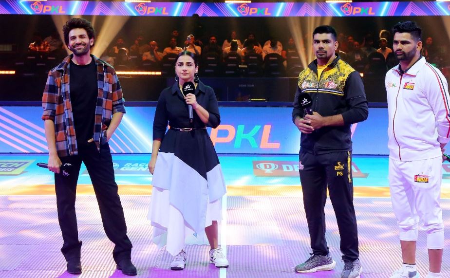 हैदराबाद, 19 अक्टूबर । प्रो कबड्डी लीग (पीकेएल) सीजन 11 की शुरुआत सितारों से सजी हुई थी। शुक्रवार शाम बॉलीवुड की मशहूर हस्तियां विद्या बालन और कार्तिक आर्यन तेलुगु टाइटन्स और बेंगलुरु बुल्स के बीच खेले गए पहले मैच में शामिल हुईं। दोनों स्टार अपनी आने वाली फिल्म ‘भूल भुलैया 3’ के प्रमोशन के लिए आए थे औऱ हैदराबाद के जीएमसीबी इंडोर स्टेडियम में उनकी मौजूदगी ने पहले से ही जोश से भरे माहौल में चार चांद लगा दिए।