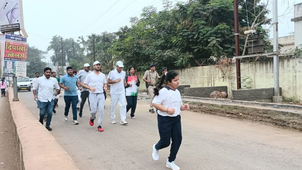 आयोजित एकता दौड़ में जनप्रतिनिधियों, जिला प्रशासन के अधिकारियों-कर्मचारियों सहित सभी शालाओं के छात्र- छात्राओं और गणमान्य नागरिकजन बड़ी संख्या में भाग लिया।