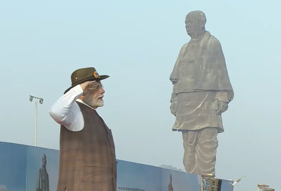 राजपीपला, 31 अक्टूबर । प्रधानमंत्री नरेन्द्र मोदी ने सरदार पटेल जयंती के अवसर पर गुरुवार सुबह सरदार पटेल की प्रतिमा पर पुष्पांजलि अर्पित की। सुबह आयोजित परेड में उपस्थित रहकर सुरक्षा दलों की परेड की सलामी ली। समारोह में मौजूद सभी लोगों को प्रधानमंत्री नरेन्द्र मोदी ने राष्ट्रीय एकता की शपथ दिलाई।