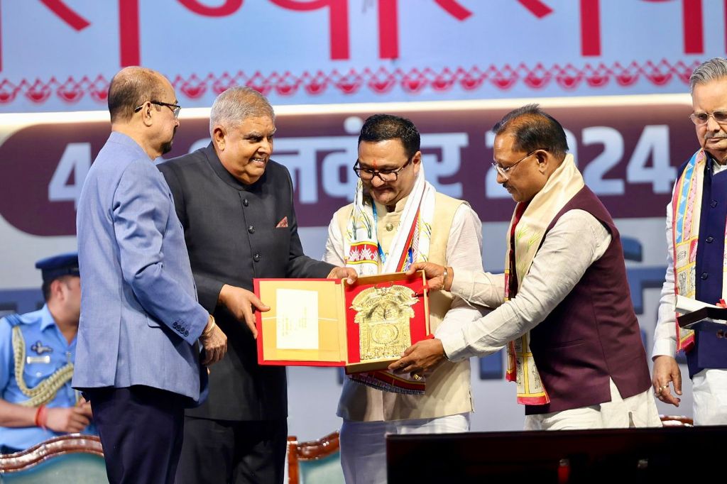 रायपुर । मनोहर गौशाला के ट्रस्टी डॉ. अखिल जैन (पदम डाकलिया) को छत्तीसगढ़ राज्य अलंकरण 2024 यति यतन लाल सम्मान से सम्मानित किया गया है। यह सम्मान उन्हें छत्तीसगढ़ राज्य स्थापना दिवस के अवसर पर भारत की उपराष्ट्रपति जगदीप धनखड़ द्वारा प्रदान किया गया। इस अवसर पर प्रदेश राज्यपाल रामेन डेका, मुख्यमंत्री विष्णुदेव साय, विधानसभा अध्यक्ष डॉ रमन सिंह, उप मुख्यमंत्री अरुण साव सहित अन्य मंत्री व नागरिक उपस्थित थे।
